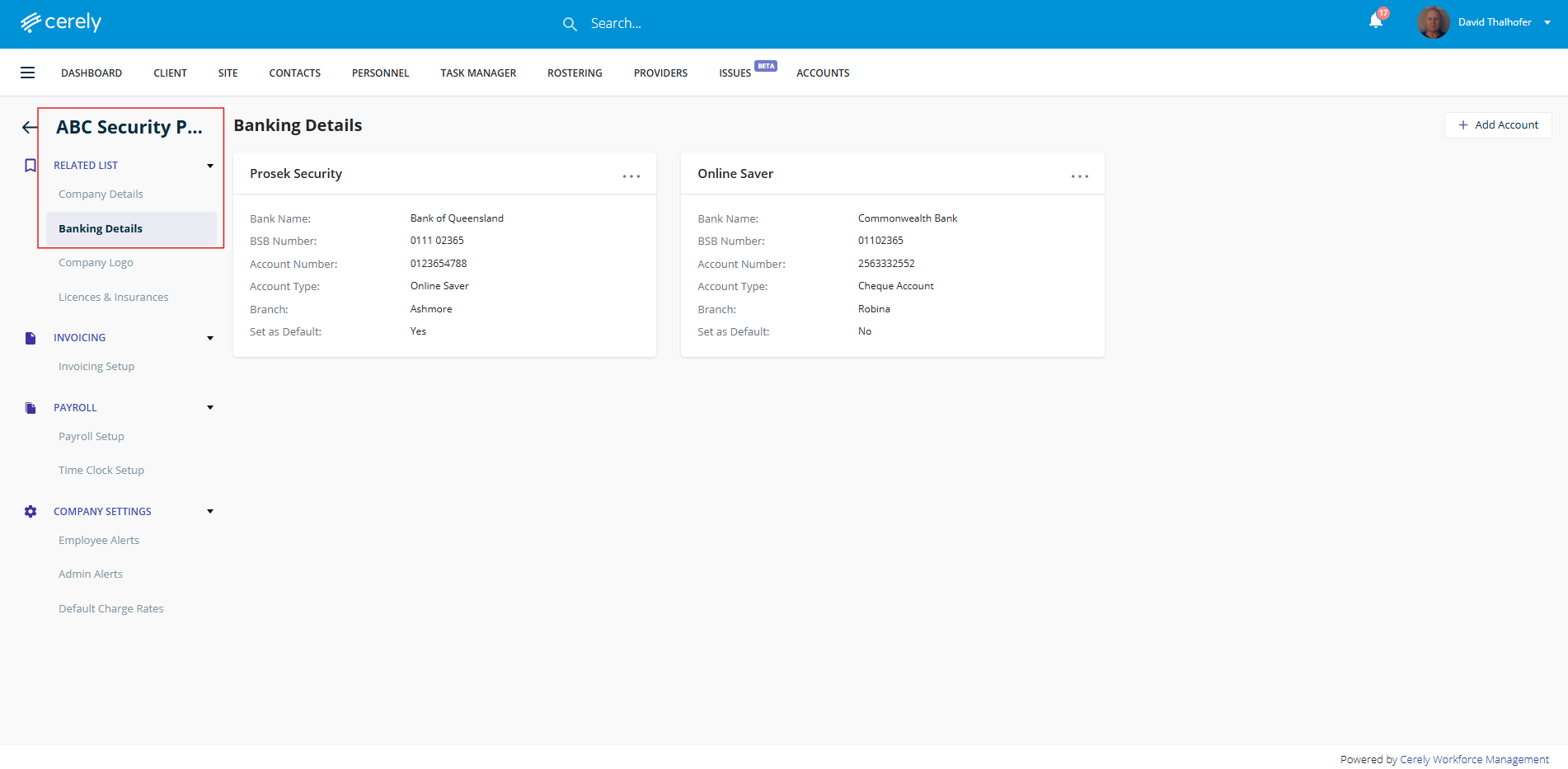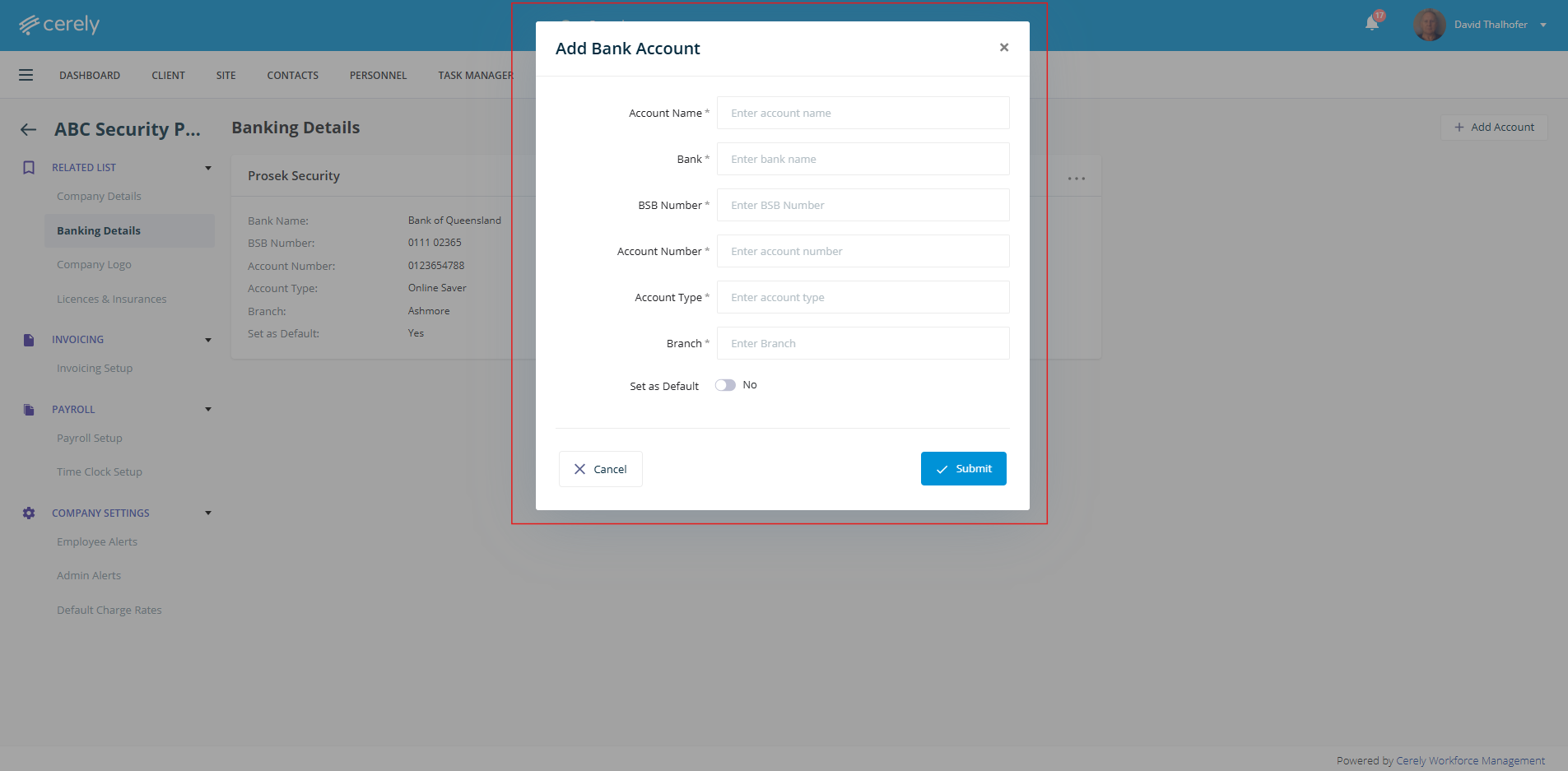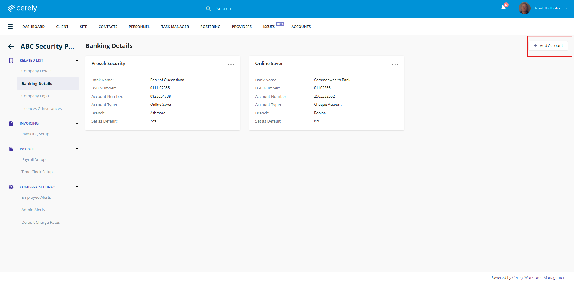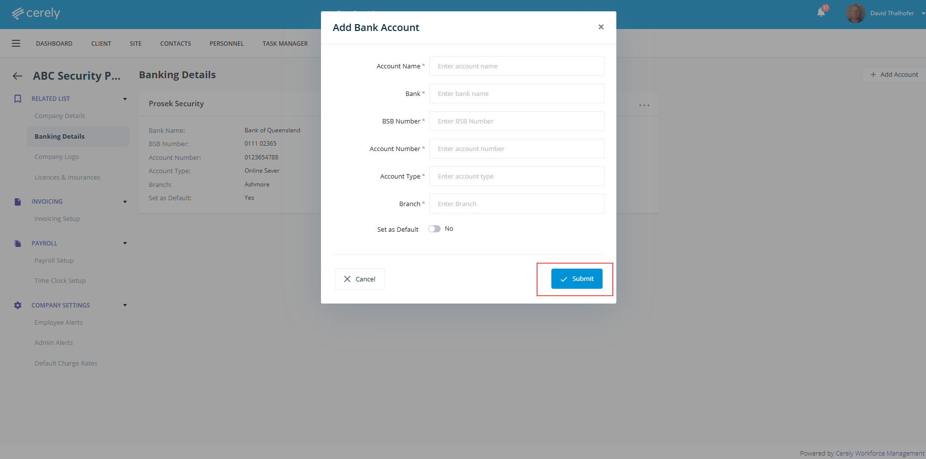 To setup your company's banking details, follow these steps to add your company banking details in the system: