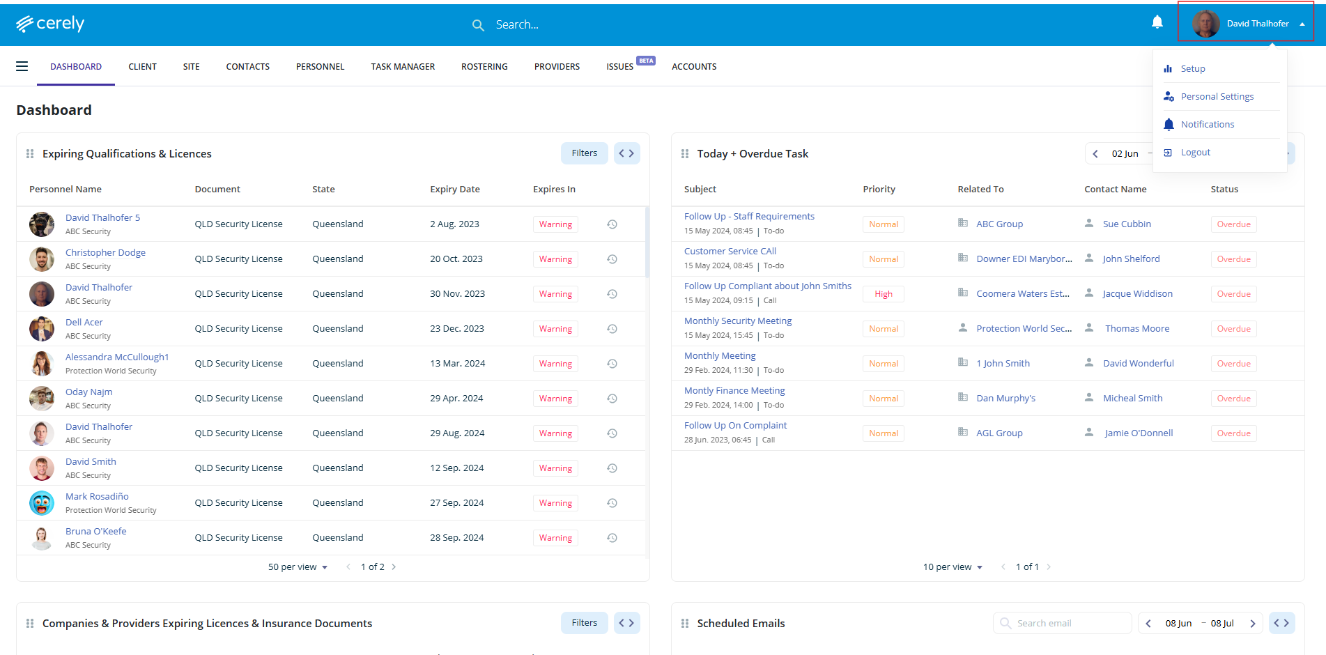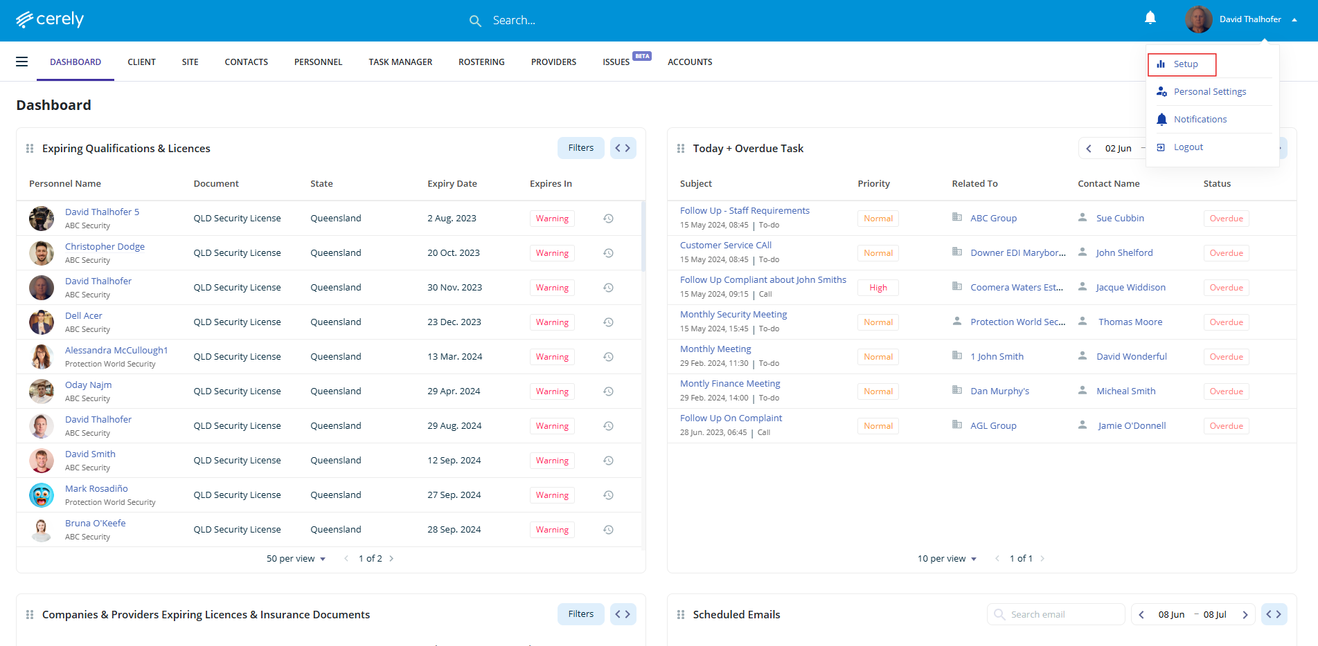 2. Select setup from the dropdown menu