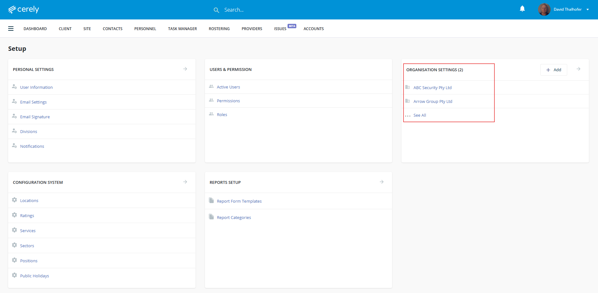 3. Under organisation settings, select your organisation's name
