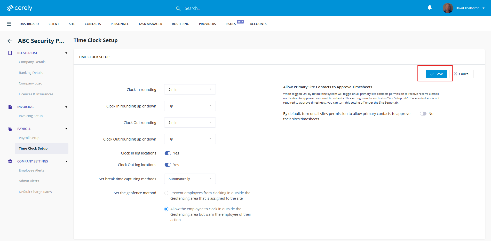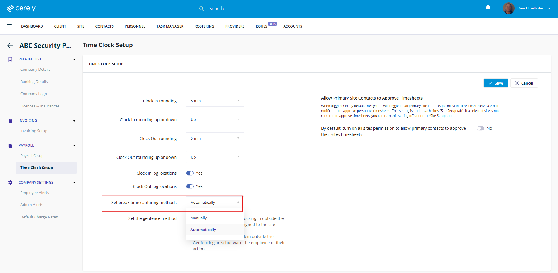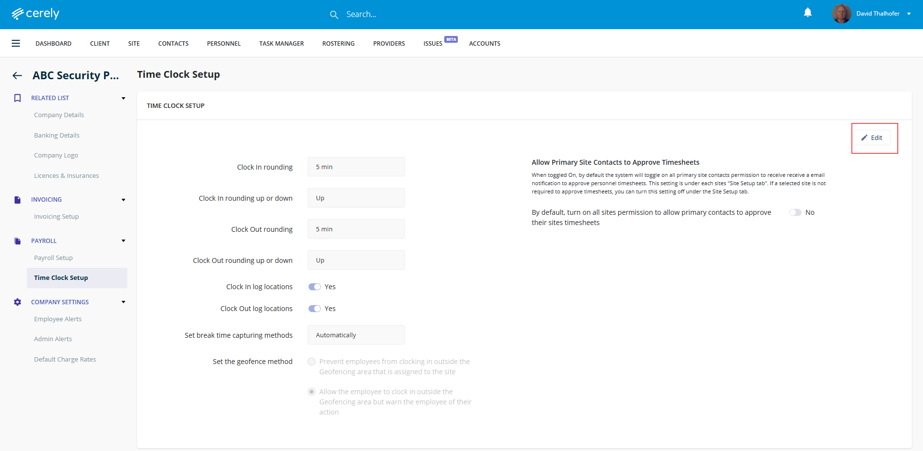4. From the left-hand menu, click time clock setup