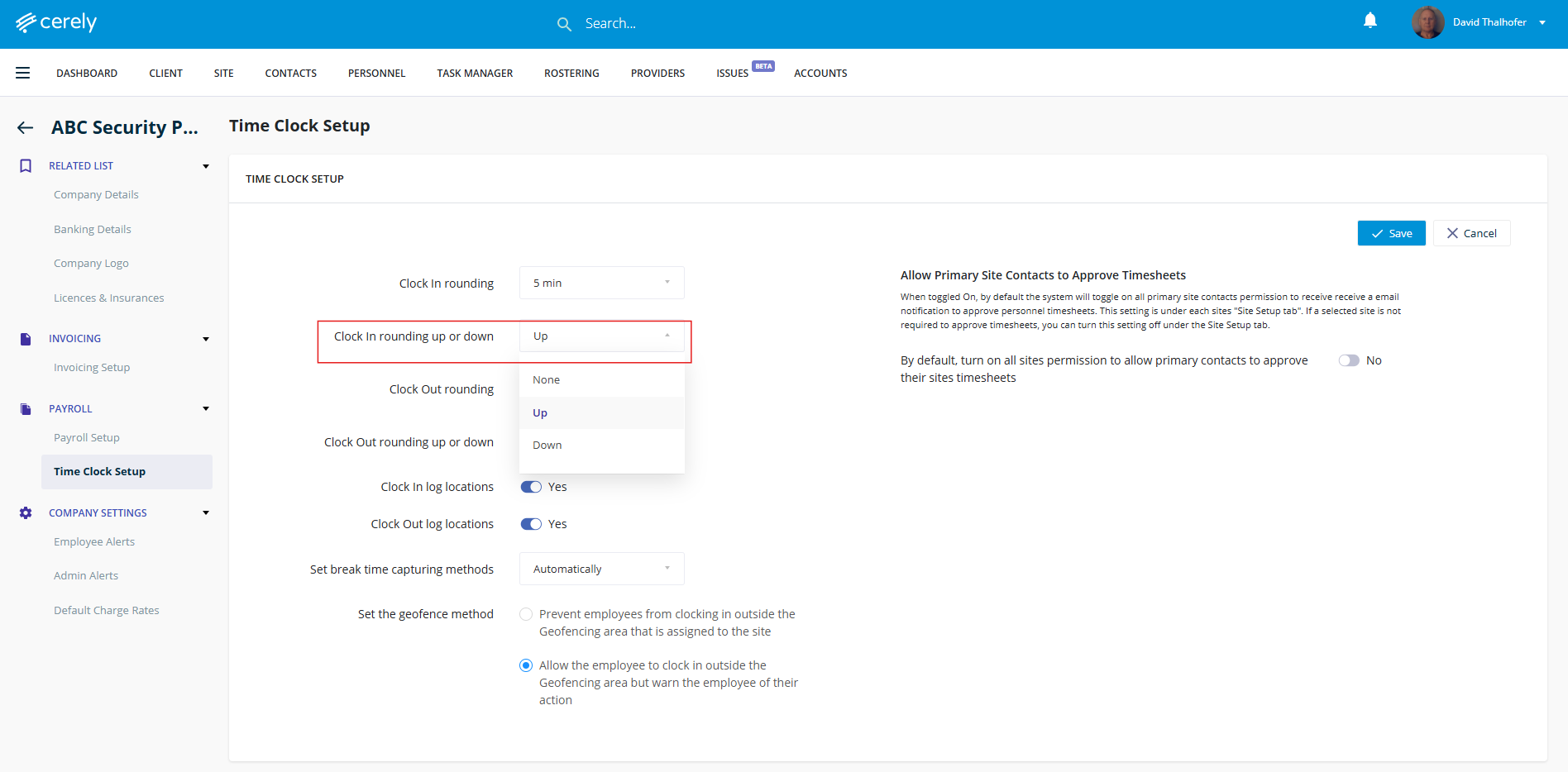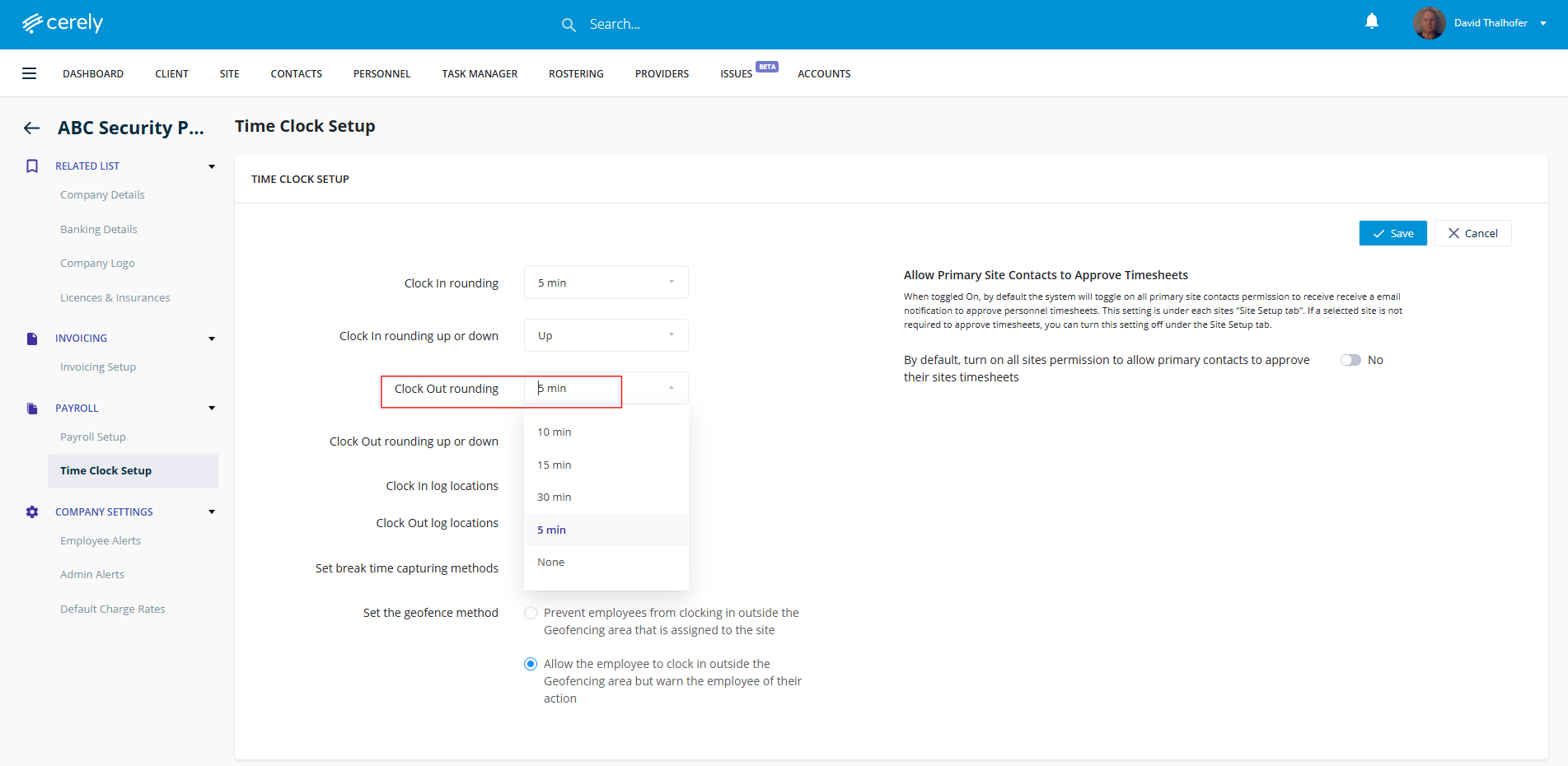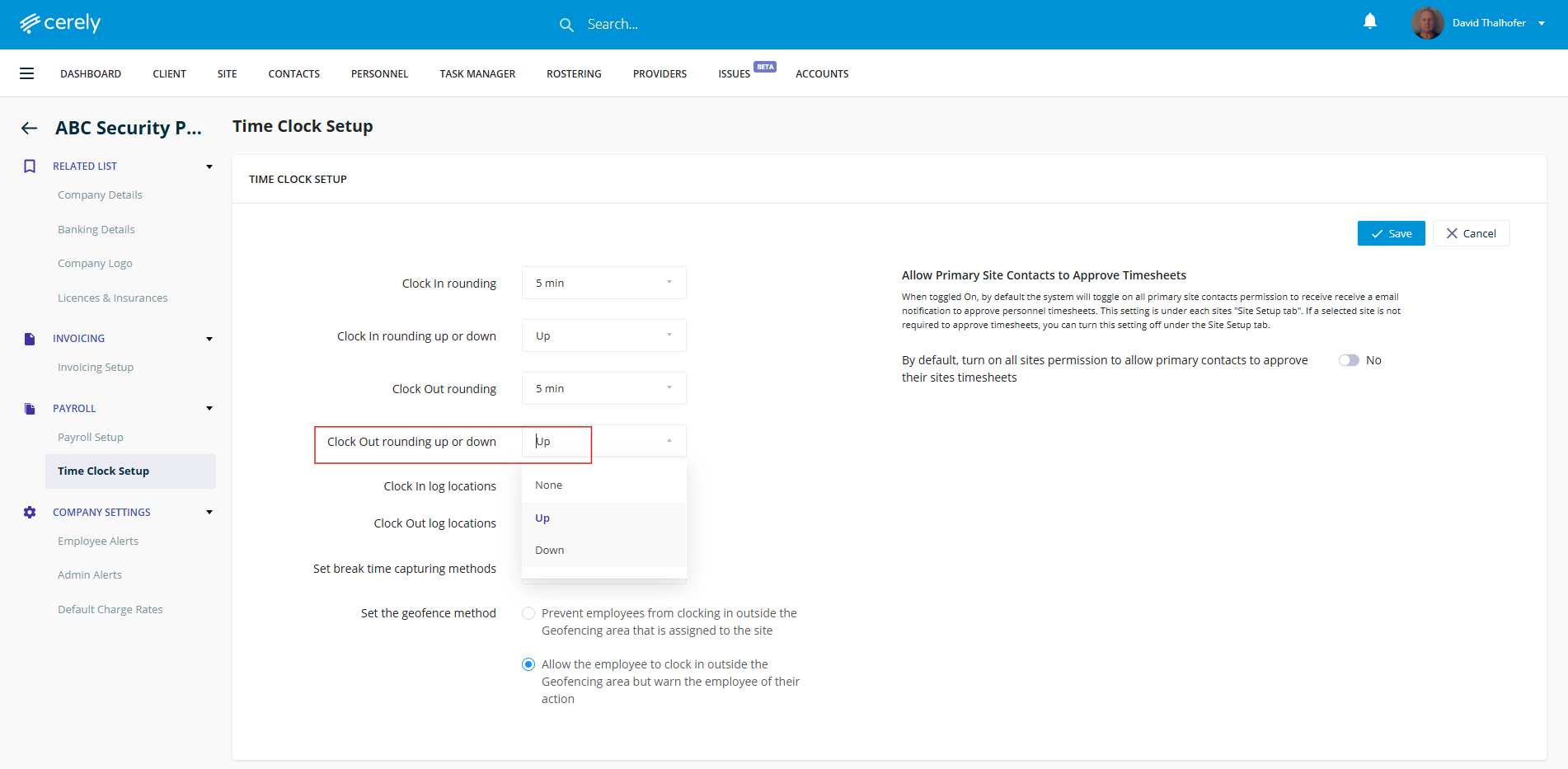 9. Select your clock out rounding option: none, up, or down