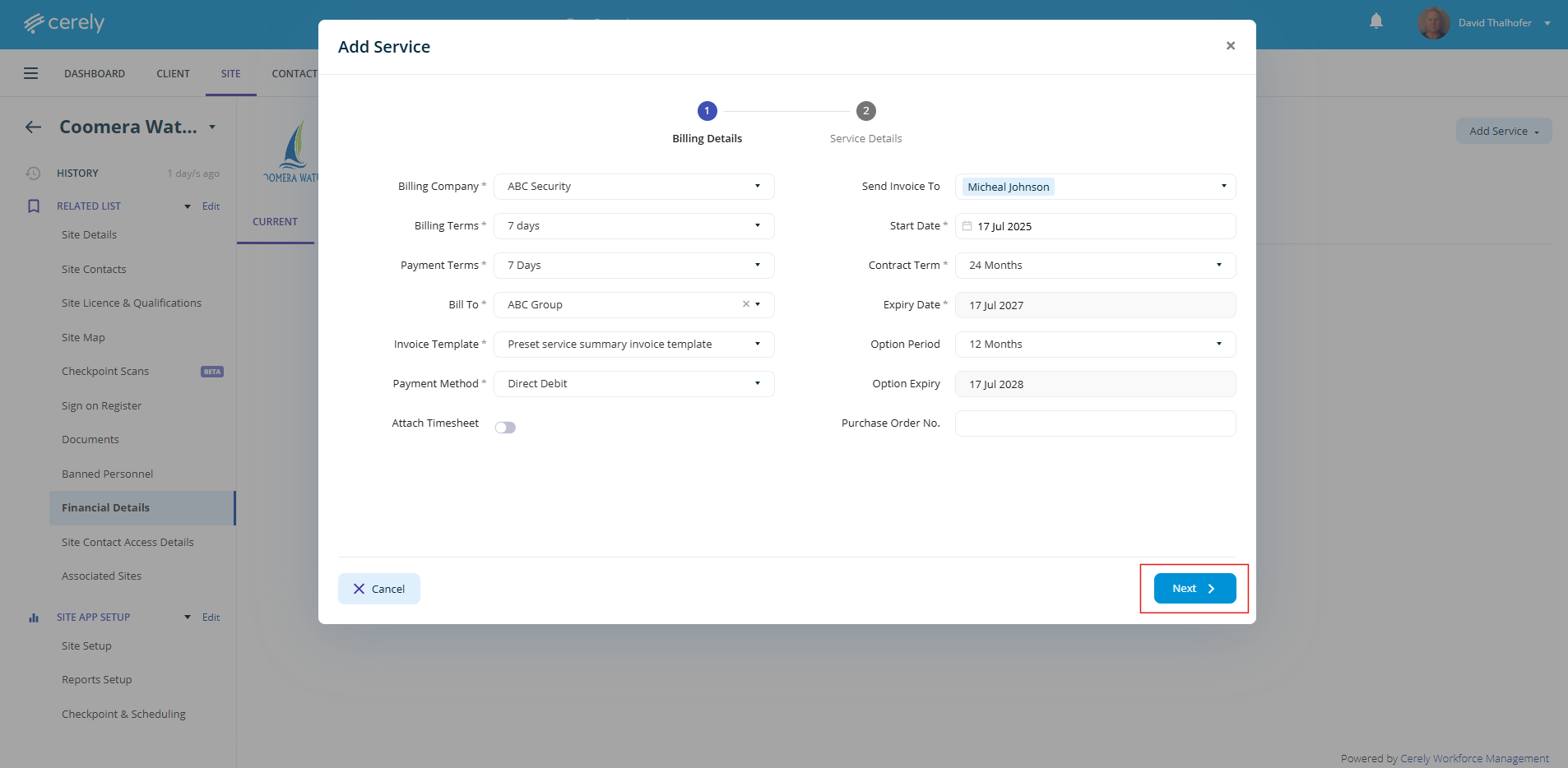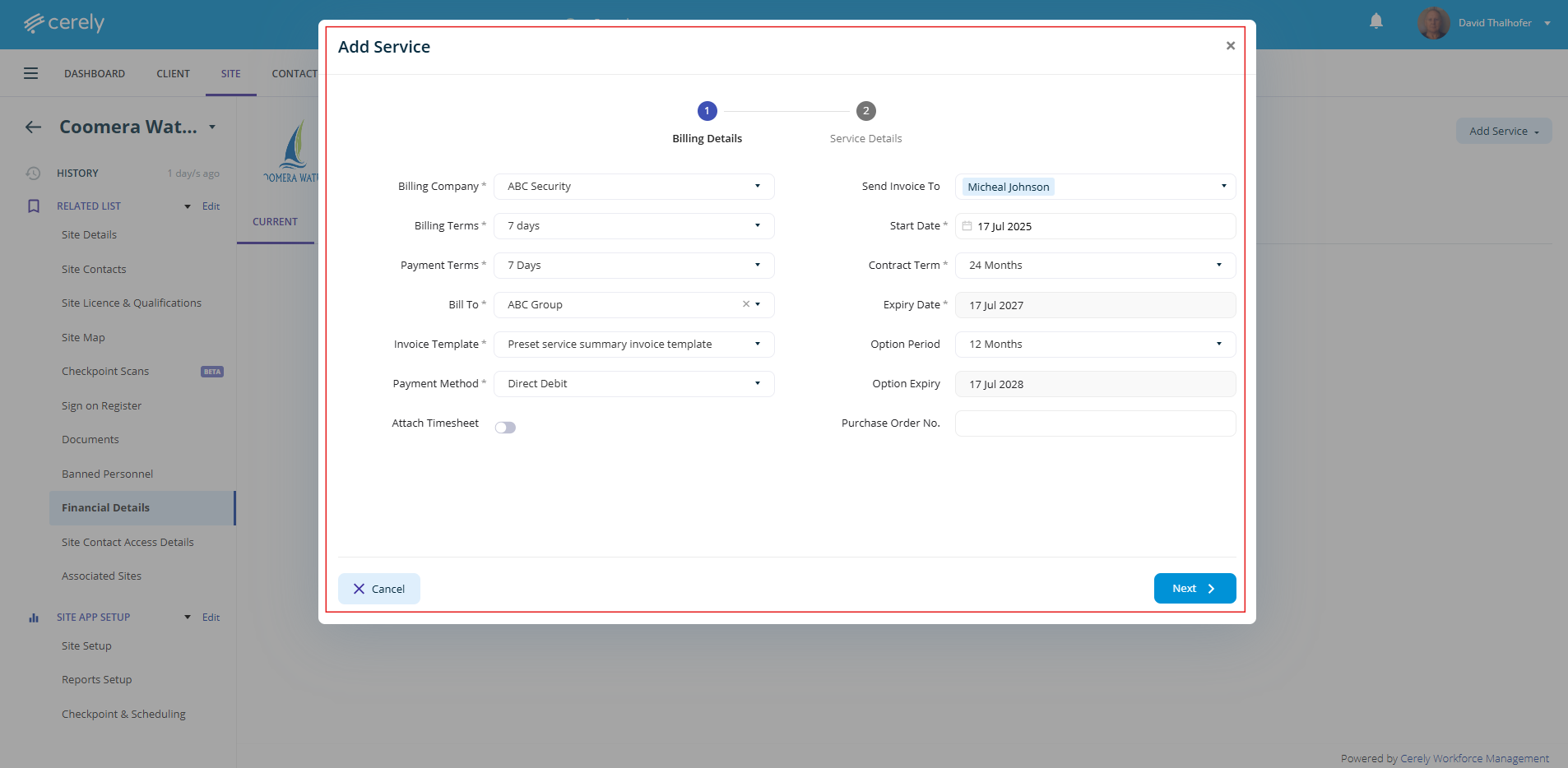| Billing Terms | Define the contractual billing frequency (e.g. weekly, monthly) |