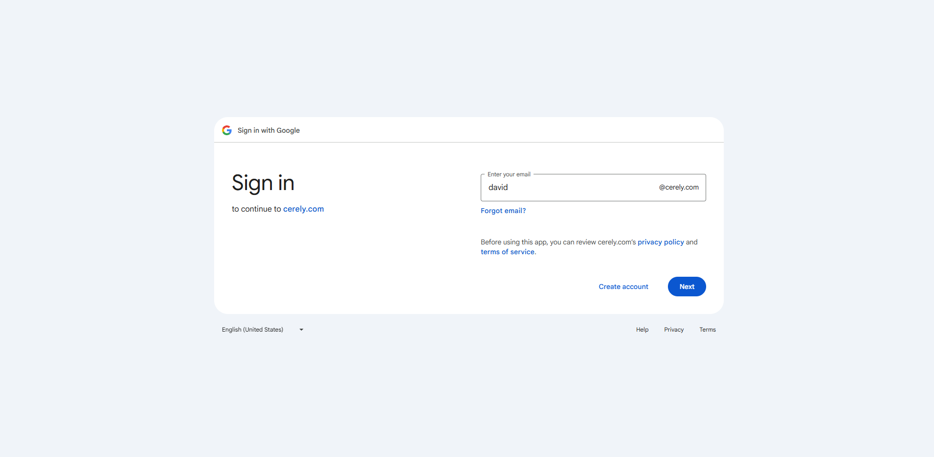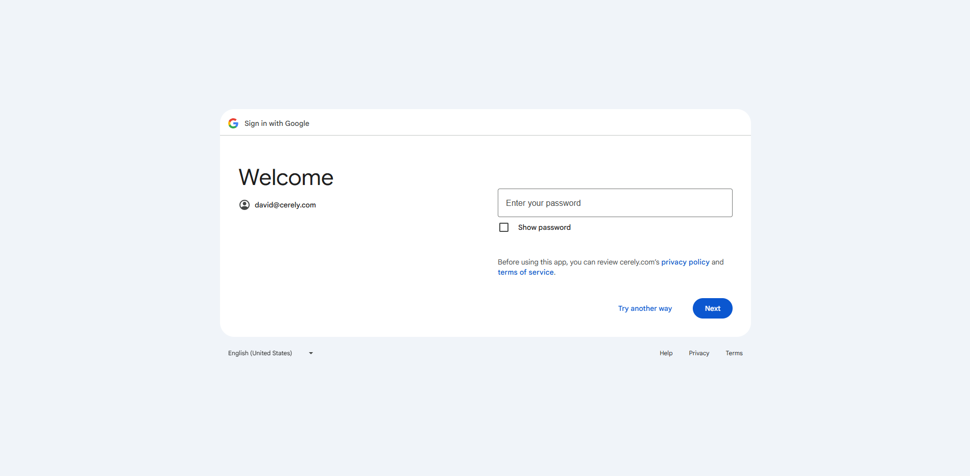6. Enter the password for your Google email account—not your Cerely login credentials.