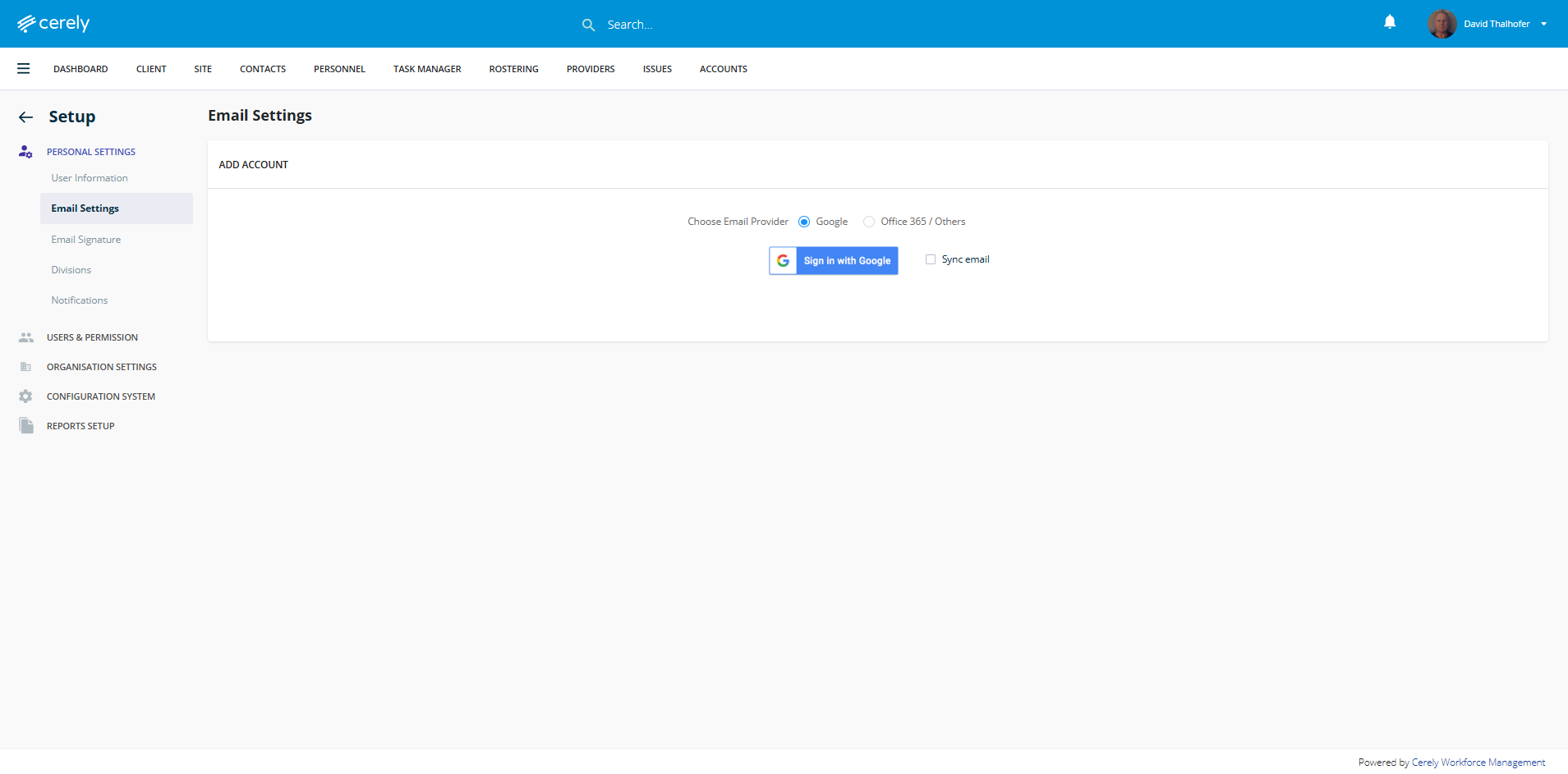 To integrate your Google (Gmail) email account with your Cerely profile, follow these steps below:
