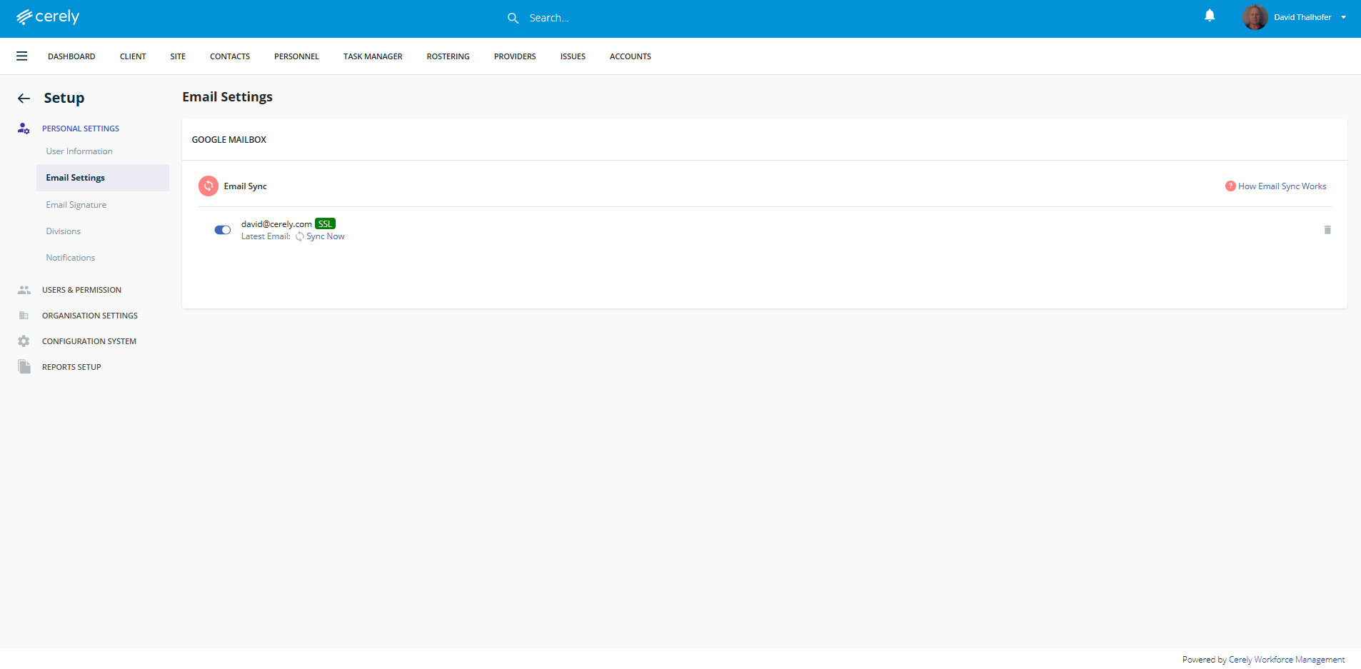 8. Your Google email account is now integrated, and email communications with CRM contacts and personnel will synchronise automatically