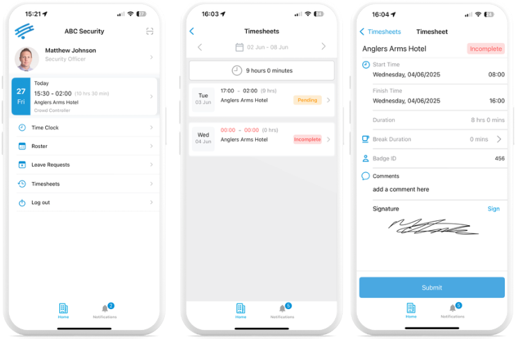 7. Tap ‘Submit’ to send your timesheet to your manager for approval