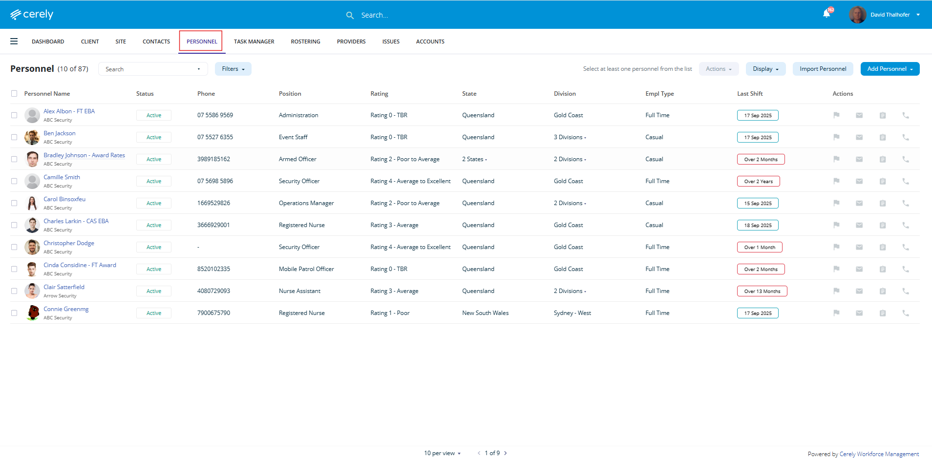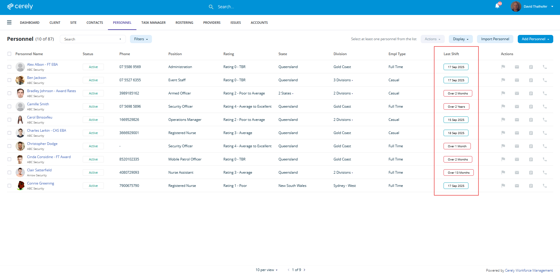 Easily identify inactive or unrostered employees by viewing the date of their last completed shift through Cerely. This is a great tool to help review your workforce and maintain an up-to-date personnel list.